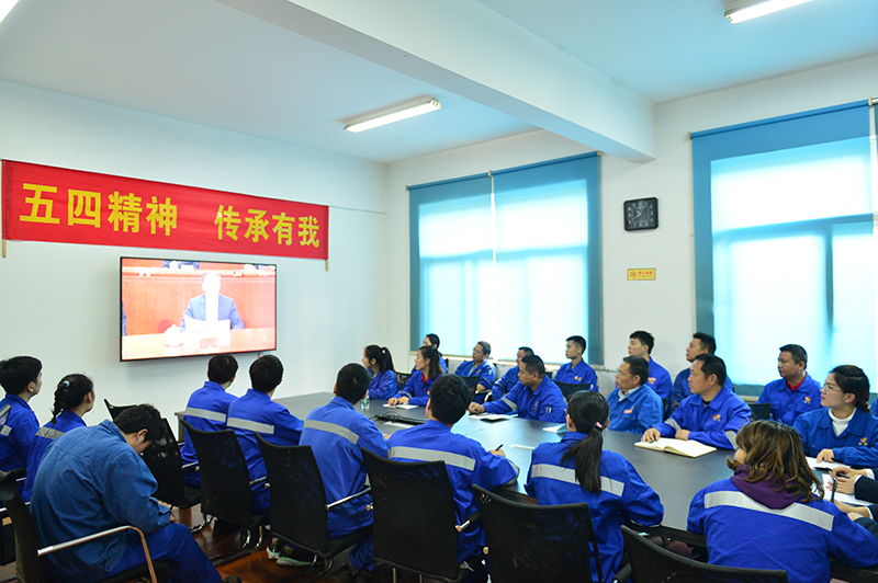 儀式結(jié)束后,公司領(lǐng)導(dǎo)左少懷、宋光鑫帶領(lǐng)各二級(jí)團(tuán)委團(tuán)干在會(huì)議室學(xué)習(xí)觀看了習(xí)近平總書記五四講話。