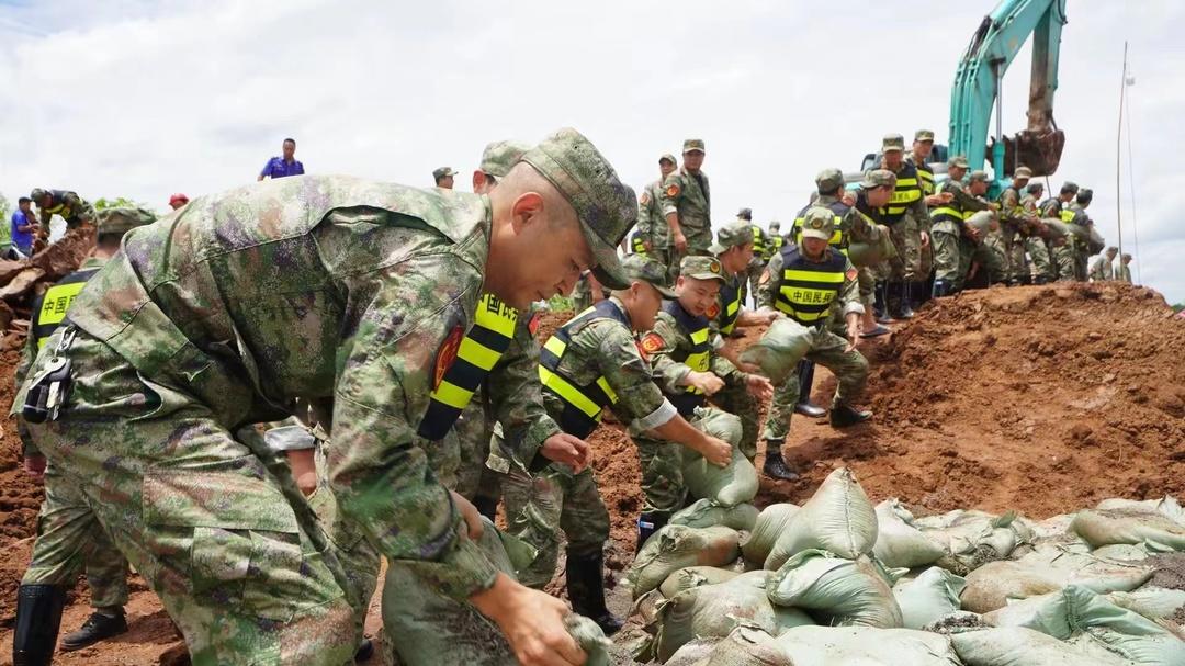 經(jīng)過(guò)數(shù)輪強(qiáng)降雨,衡陽(yáng)蒸水河已超歷史水位,呆鷹嶺鎮(zhèn)河邊出現(xiàn)管涌。如不緊急封堵,就會(huì)發(fā)生決口潰堤。 來(lái)不及猶豫,緊急集合的衡鋼民兵隨即兵分兩路,一隊(duì)轉(zhuǎn)運(yùn)沙袋,以最快速度圍住管眼,防止流土發(fā)生;另一隊(duì)圍著堤壩另一面開(kāi)展“打樁固堤”,加強(qiáng)薄弱環(huán)節(jié),防止流水對(duì)堤壩的沖刷。大家緊密配合,分工協(xié)作,全力投入險(xiǎn)情處置中,扛袋、固堤,汗水濕透衣服,泥巴裹滿褲腿,經(jīng)過(guò)連續(xù)奮戰(zhàn),險(xiǎn)情終于得到了有效控制。
