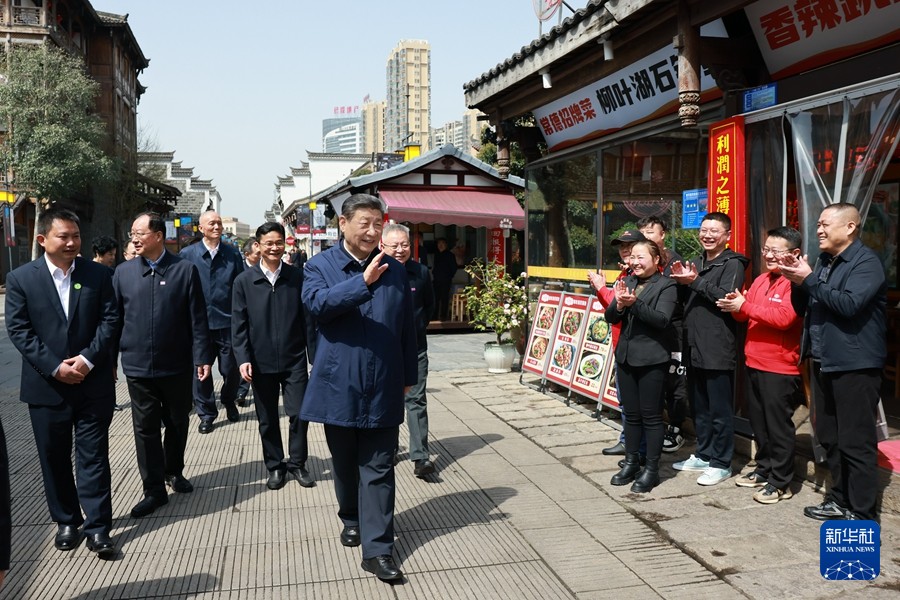 3月18日至21日,中共中央總書記、國(guó)家主席、中央軍委主席習(xí)近平在湖南考察。這是19日上午,習(xí)近平在常德河街考察。新華社記者 鞠鵬 攝